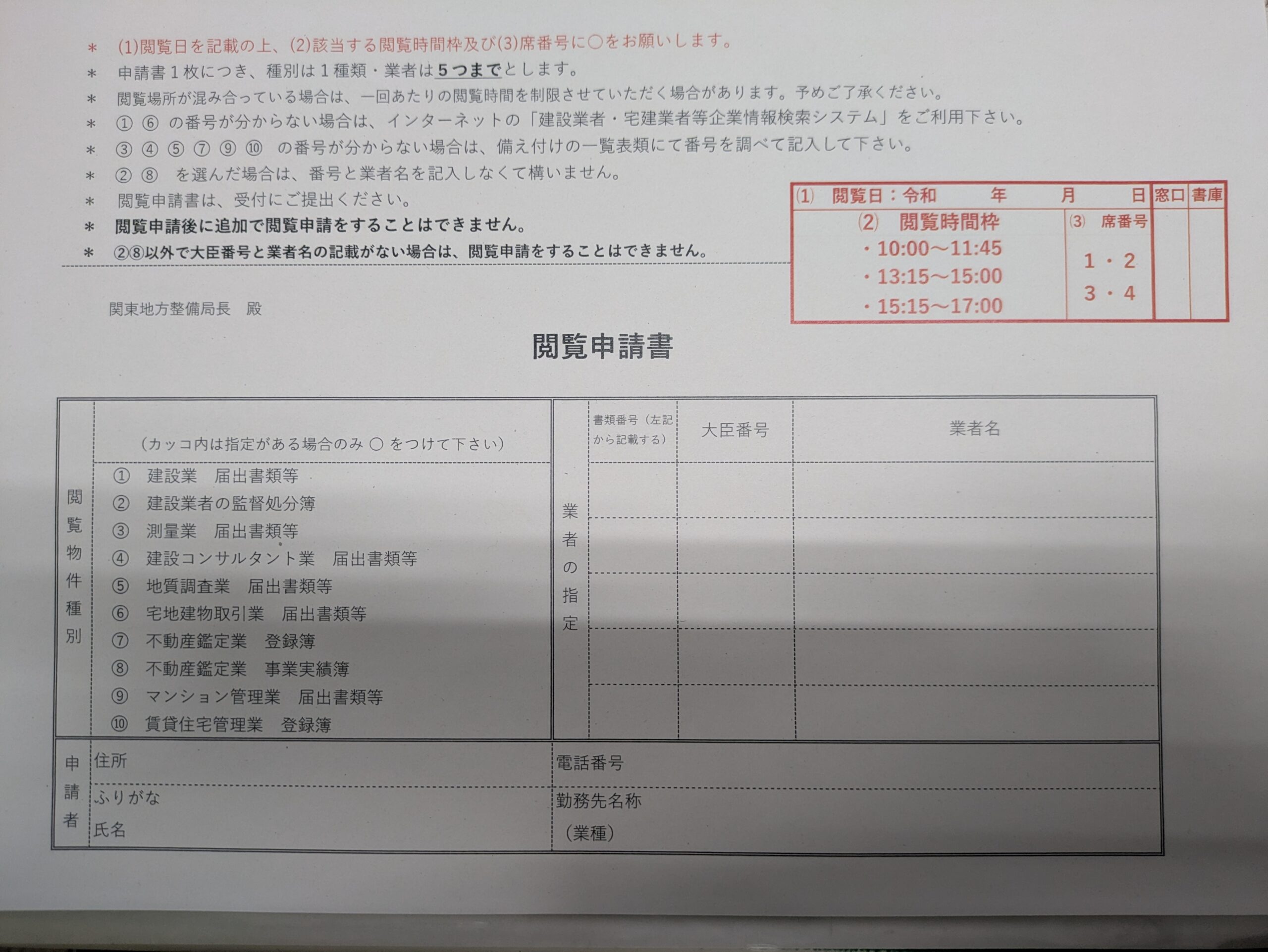 現地で閲覧申請書を書く手間を省く為、前もって書いておきます